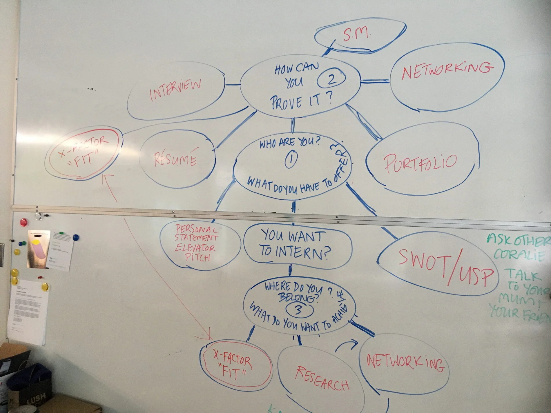 The students used their stickies to help them generate an authentic summary of their skills and strengths and what makes them special. This “elevator pitch” allows them to present a consistent, professional narrative through all their “touchpoints”. They learned that these touchpoints include their résumé, portfolio, social media presence and face-to-face encounters with industry.