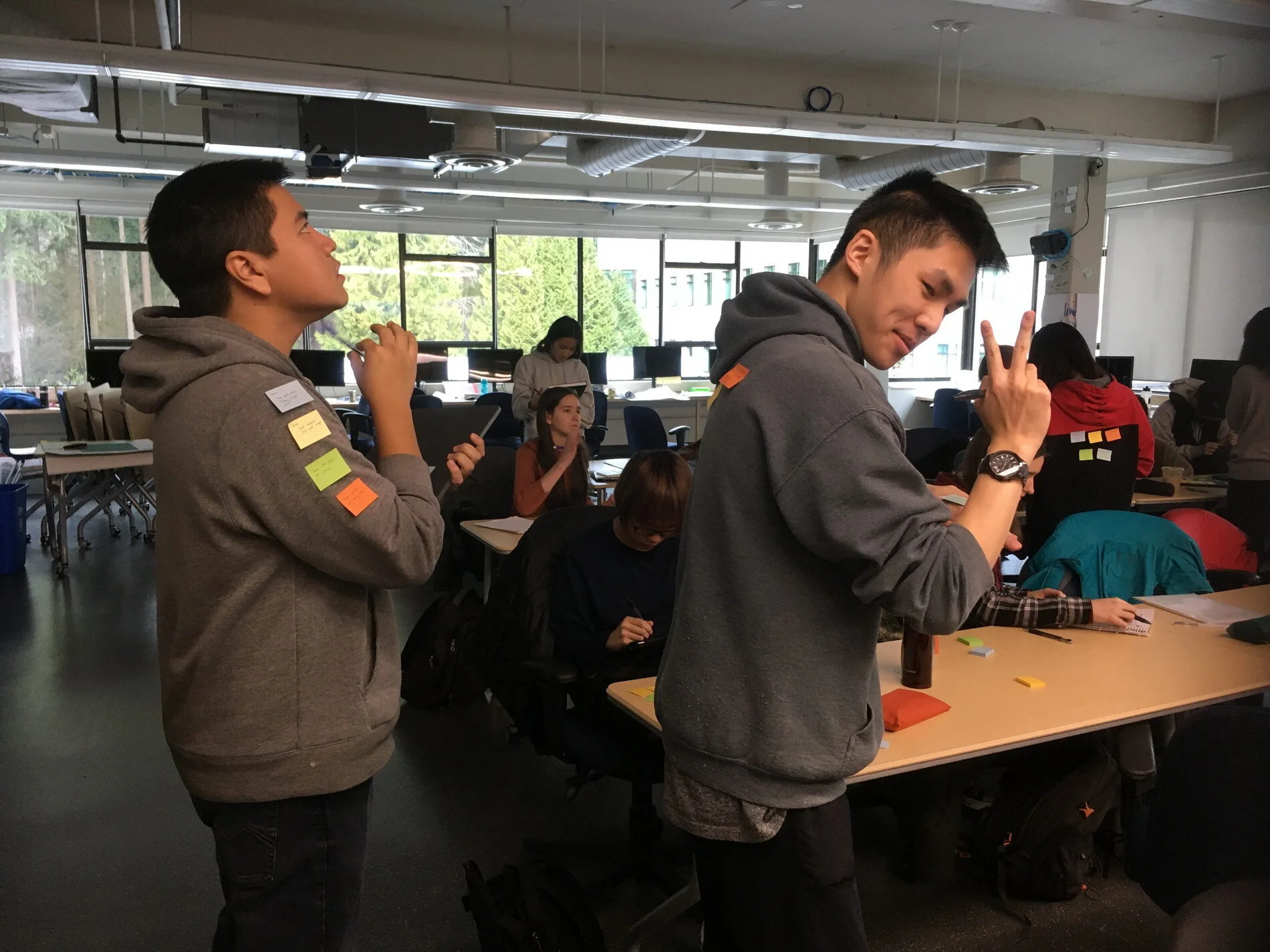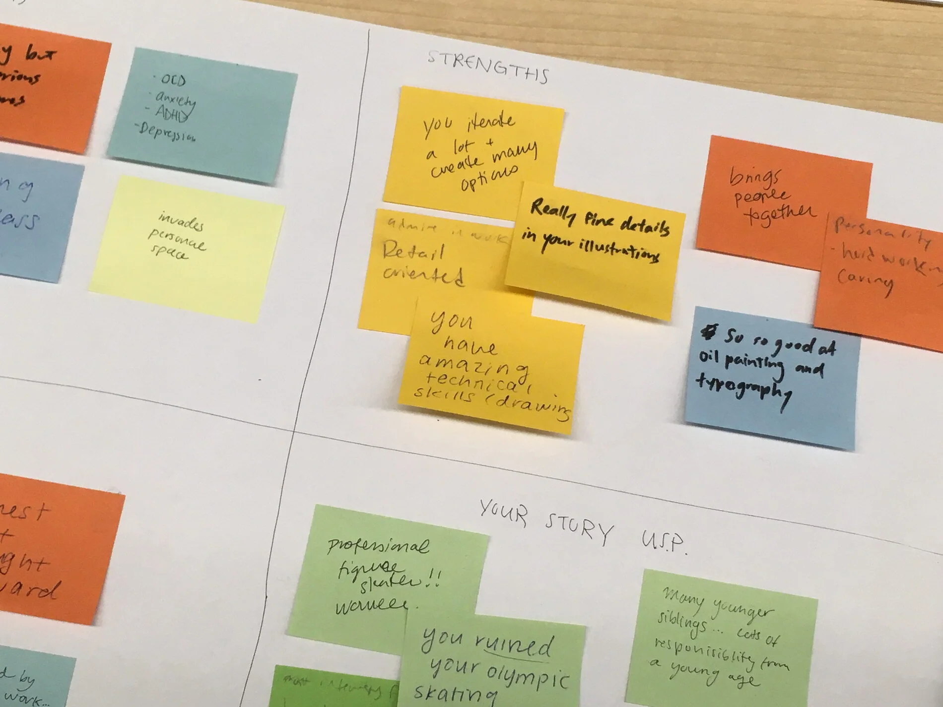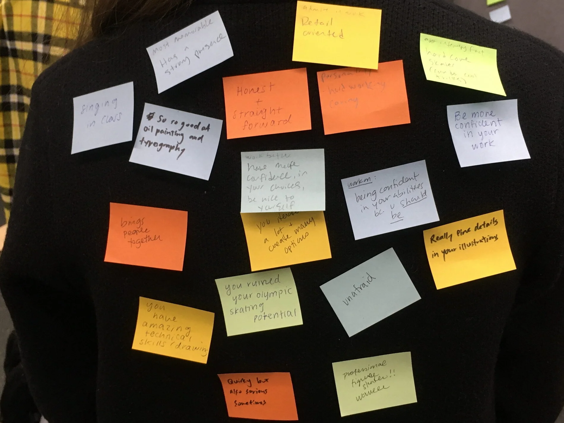 Using colour-coded stickies, the students helped one another identify their strengths and weaknesses.