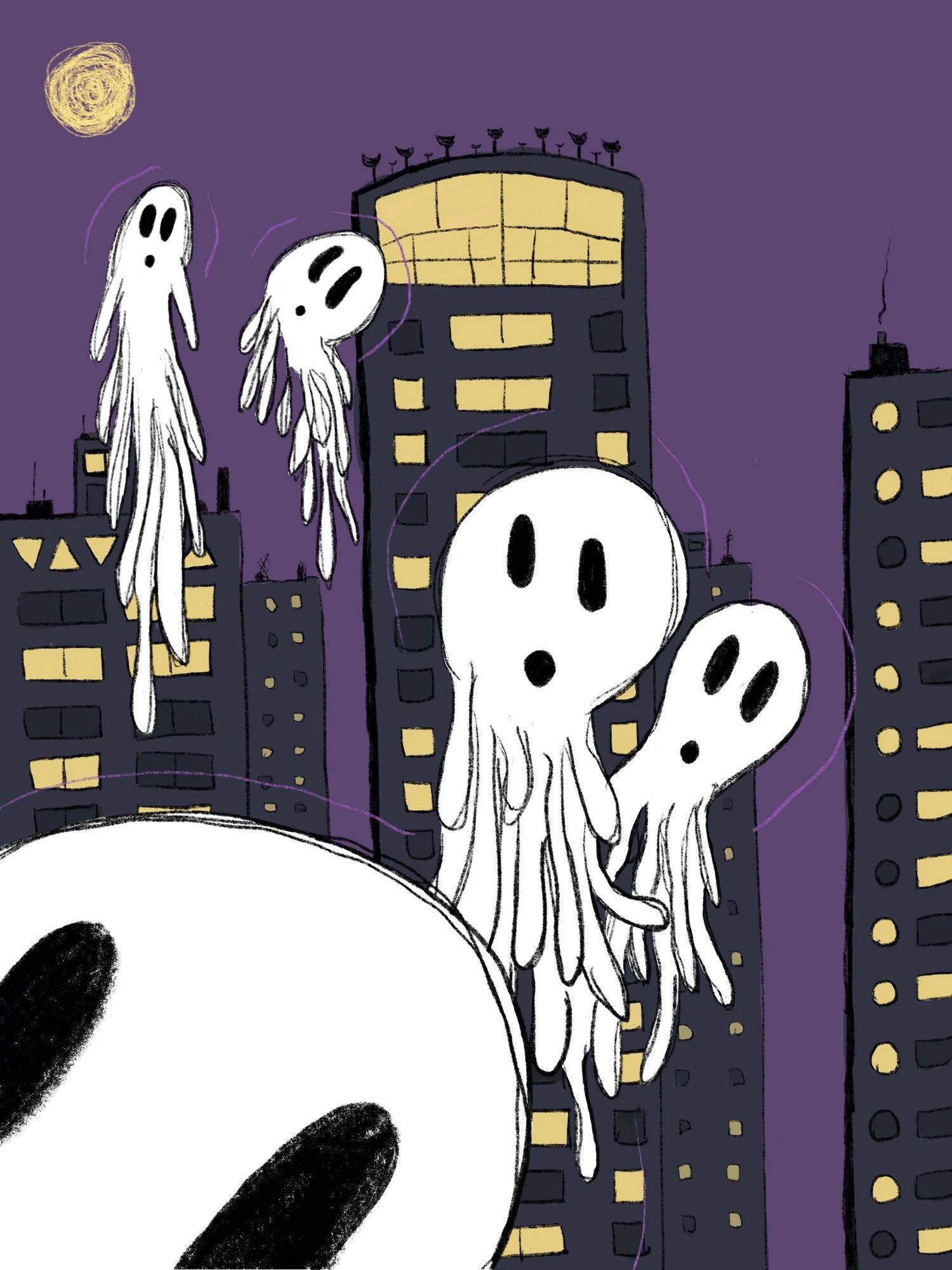 A digital sketch of some ghosts living in the city. Why are they looking at me like that?
