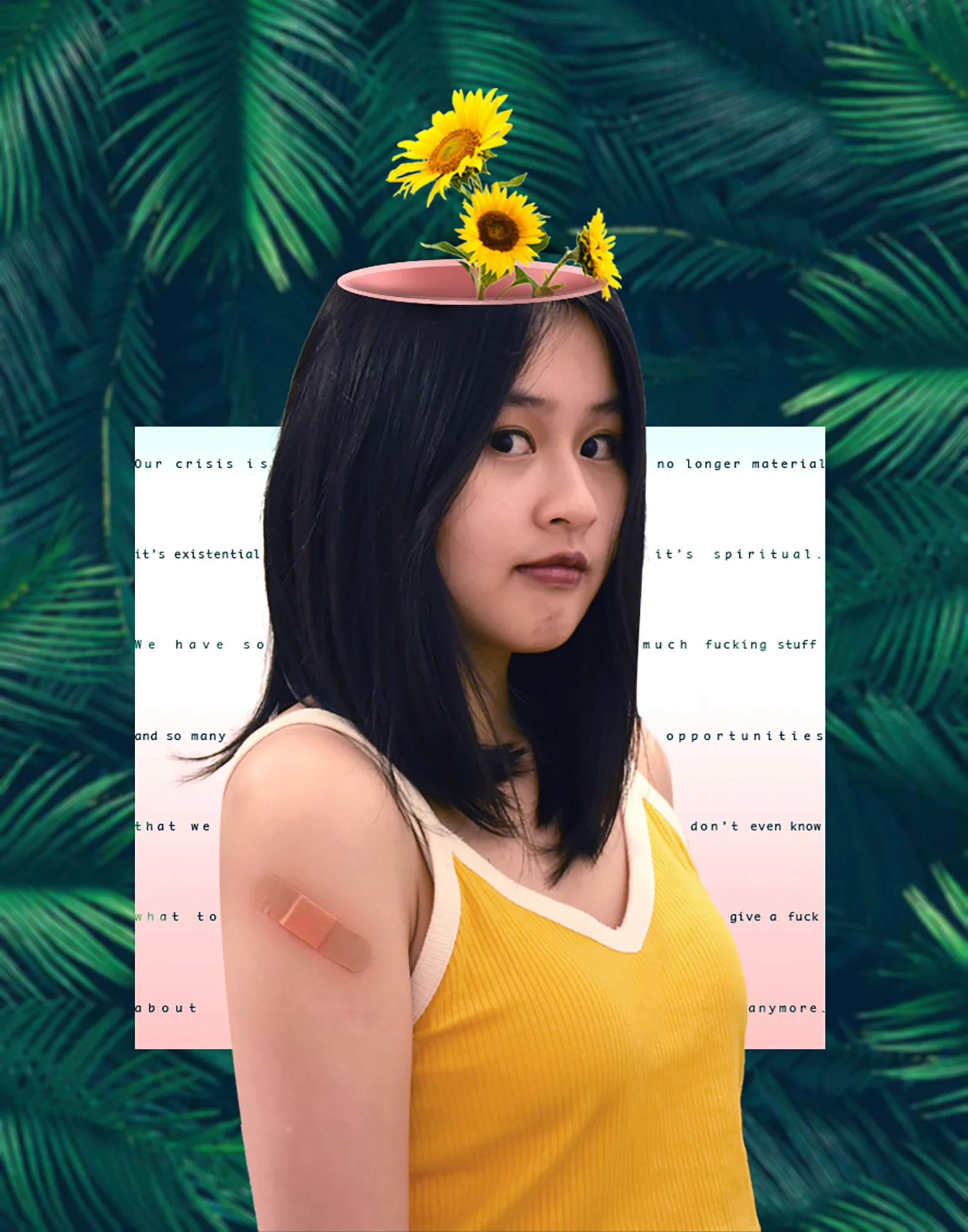 Joyce has always been interested in photo manipulation shown above in her self portrait inspired by a quote by author Mark Manson. Read her story.